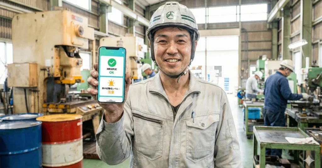 『smart-kit』には、切削液の選定や消防法の計算以外にも、「WBGT(暑さ指数)対策」の機能が搭載されています。 「なんで油屋さんが、熱中症のことを?」と不思議に思われるかもしれません。