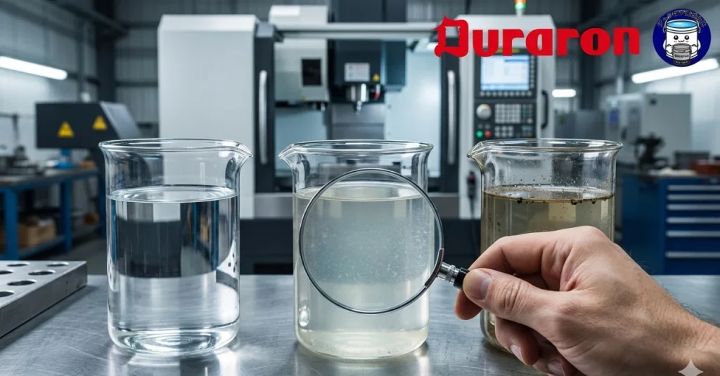 「硬水対応型」切削油: キレート剤(硬度成分を封じ込める添加剤)が多く配合された油剤を選定します。